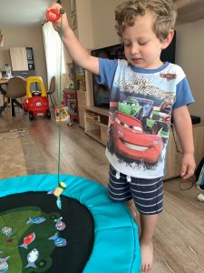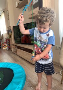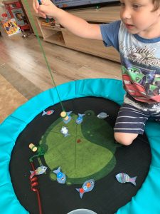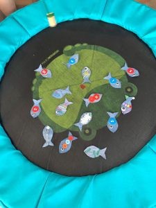 За по-големите деца можете да поставите точки върху рибките. Така играта ще се превърне в състезание за събиране на най-голям брой точки. Децата ще броят и смятат.