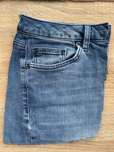 Следващото ми предложение е за аксесоар, който лично на мен ще ми свърши чудесна работа. Често пътуваме и след като приготвя багажа на двете деца, се замислям какво ще ми е нужно на мен. Винаги в последния момент пъхам телефона,зарядното и слушалките в чантата. След това винаги се ядосвам, защото всичко се е оплело. Ако и вие имате същия проблем направете си калъфче от старите дънки.За целта избрах частта от дънките,която включва предния и задния джоб: