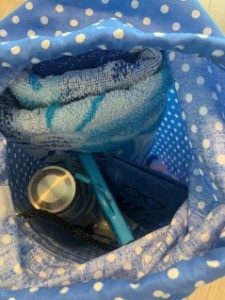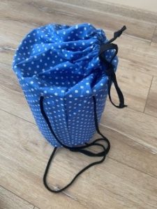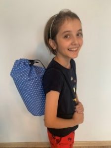Готово! Вече имате раничка от туба за вода. Получи се много добре и е много здрава. Ако направите раничка за плажа за всички членове на семейството, всеки ще може сам да си носи принадлежностите за плажа.  Дъщеря ми си постави и няколко пинчета за украса и така допълнително заздрави прикрепването на плата към тубата. Разбира се, можете да си ползвате раничка и в ежедневието. В нея се събира доста багаж и е супер оригинална и интересна.