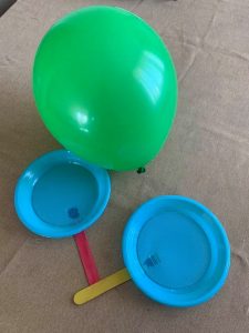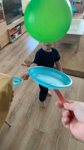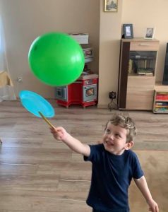 Ако обядвате навън или си взимате храна за офиса и ви поднесат обяда в пластмасови чинийки, запазете ги. Почистете ги и им поставете дървени клечки за дръжки. Готово! Имате хилки за игра. Надуйте балона и си го подавайте или оставете детето да го погони из къщата и да изхаби малко енергия.