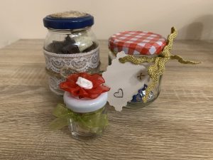 Вярвате ли, че бурканите са страхотни опаковки за малки подаръчета-аксесоари, бонбони и други. Можете да ги преобразите като им поставите панделка, картичка и т.н. Като любител на сладкото, аз лично, бих се зарадвала много на бурканче с ръчно изработени шоколадови бонбони. Сигурна съм, че във всеки магазин от този вид ще се радват да поставят бонбоните във вашето, ръчно украсено, бурканче и така да си спестим техните пластмасовите или картонените кутийки.