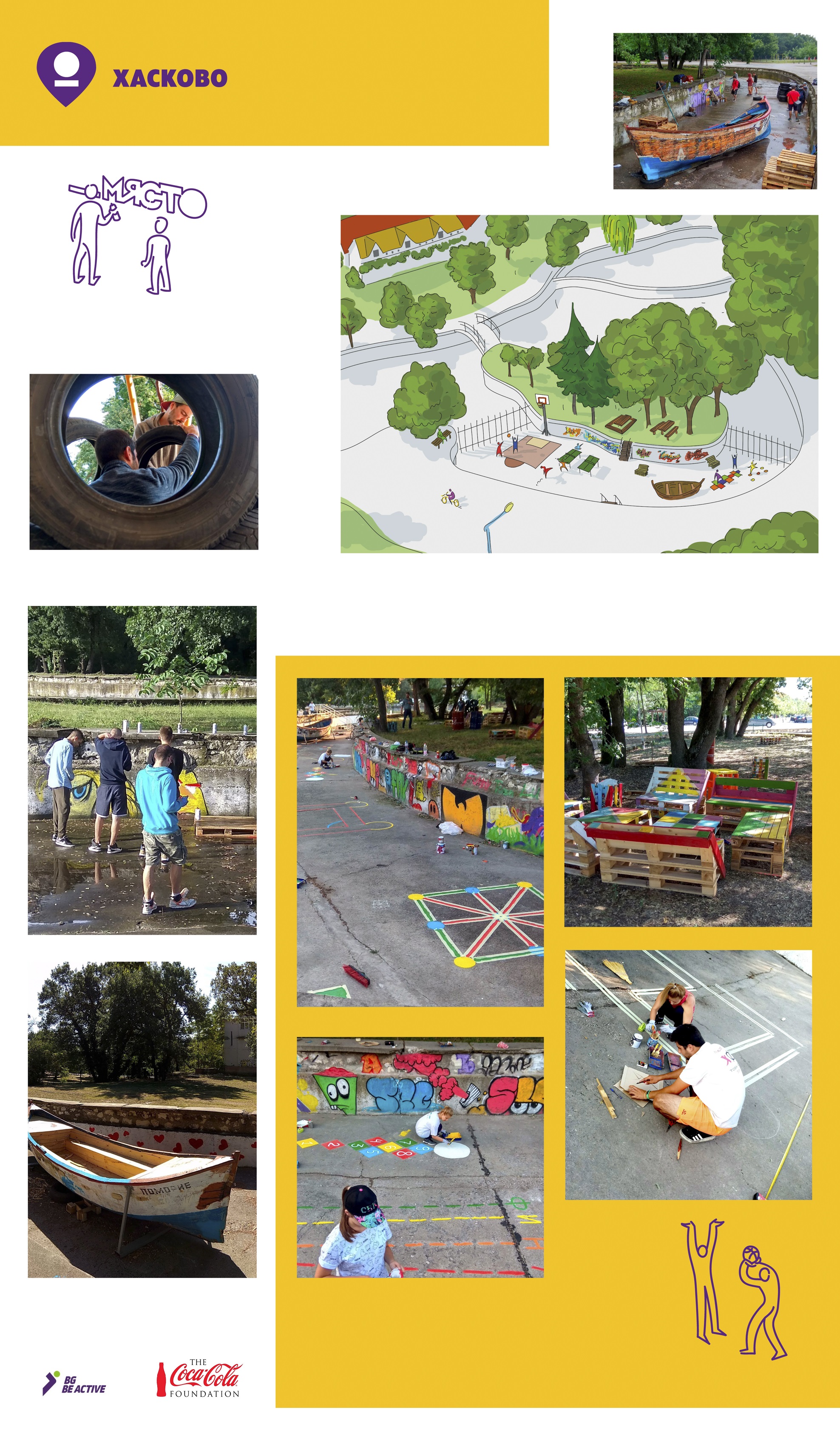 📌Намесата се основаваше на амбициозна идея на местния партньор да ‘инжектира‘ нов живот на едно от най-емблематичните места в град Хасково от близкото минало – езерото в парк „Кенана“. Това публично пространство в миналото е функционирало като езеро, изпълнено с лодки и водни колела, в непосредствена близост до зона с ресторант. През годините поддръжката на езерото се е превърнала в непосилна – водата е източена, а околното пространство, в т.ч. и ресторантът, спират да функционират.
