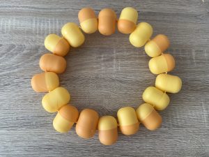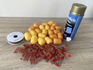 Следващото ми предложение е за изработването на коледен венец за вратата. Изработих го от кутийките в шоколадовите яйца. Необходими са ви 18 бр. кутийки. Свържете ги една с друга като затворите капачето на едната за капачето на другата и така докато образувате венец. Боядисайте венеца със спрей-боя- златна, зелена, сребърна или каквато друга пожелаете. Украсете с панделки, камбанки или друго. Поставете панделка от едната страна, с която да вържете венеца за вратата.