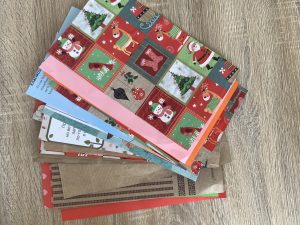 Перфорирайте торбичките в горния край и ги нанижете на връв. Не забравяйте преди това да ги напълните с вкусни лакомства. Поставете им номера от 1 до 24. Поставих моя календар на стената с двойнозалепваща лента. Ако имате удобно място, където да ги завържете също ще стоят добре и като декорация.
