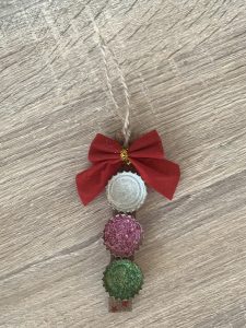 Можете да направите коледни играчки от пластмасови капачки, капачки от стъклени бутилки, шишарки, жълъди, кутийки от шоколадови яйца и други. Необходими са ви панделки, меки топчета, очички, копчета,брокат и т.н. Трябва ви и силиконов пистолет,за да залепите всичко и връвчица за всяка играчка, с която да ги закачате на елхата…