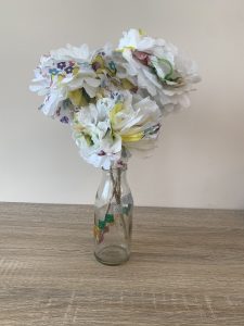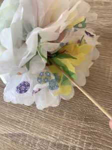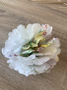 Бонус идея: Ако нямате цветя, в момента, можете да си направите от салфетки. Салфетките трябва да са трипластови. Нагънате салфетката като ветрило. Захванете в средата с телбот. Изрежете полукръг в двата края. Отделете един по един словете на салфетката един от друг. Мушнете в средата дървена клечка и цветята са готови. Можете да ги поставите във вазата и ще имате страхотна декорация за къщата.Моите цветя боядисах съвсем леко със златиста боя-спрей,за да се вържат на червено-златната ми тема.