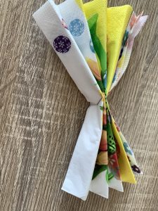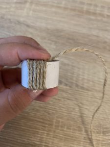 Салфетките са важен елемент от аранжировката на масата. Неизменна част към салфетката е и рингът, с който тя се поднася. Можете да направите оригинални рингове за вашата маса от картонени ролки. Около моите ролки навих въженце, което залепих с помощта на силиконов пистолет. Получиха се много добре и ще бъдат в тон с останалите декорации.
